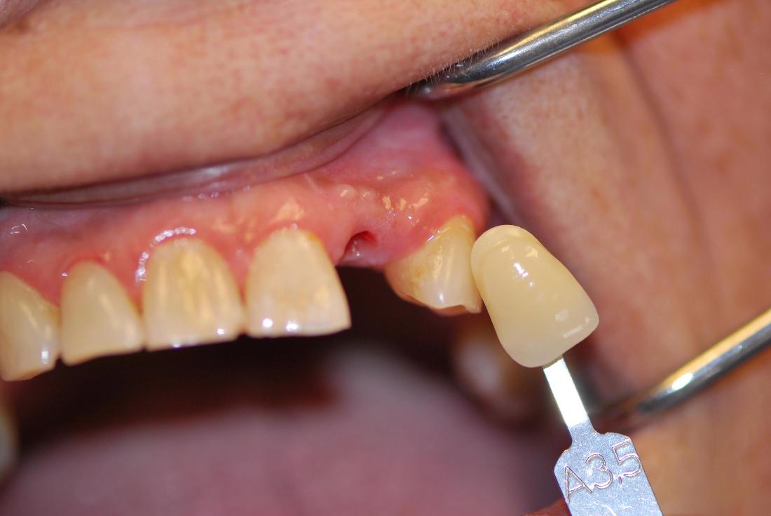 Carla was very uncomfortable with her missing front tooth and was wearing a removable denture-- a flipper. A dental implant was placed and she returned later for the new crown. The picture shows a shade guide and an implant in the site of where her front tooth was. After is the restored implant crown by Dr Dicello. An Emax crown was carefully layered for esthetics. It looks great and she should have it for many years to come! We're happy for you Carla. Keep smiling!